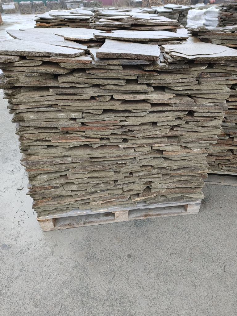 Плитняк песчаник серо-зелёный для облицовки цоколя, отмостки 20-25 мм